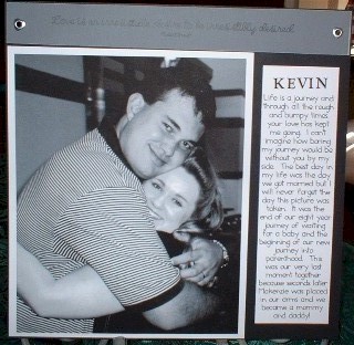 Life is a journey and through all the rough and bumpy times your love has kept me going. I can't imagine how boring my journey would be without you by my side. The best day in my life was the day we got married but I will never forget the day this picture was taken. It was the end of our eight year journey of waiting for a baby and the beginning of our new journey into parenthood. This was our very last moment together because seconds later Makenzie was placed in our arms and we became a mommy and daddy!" |